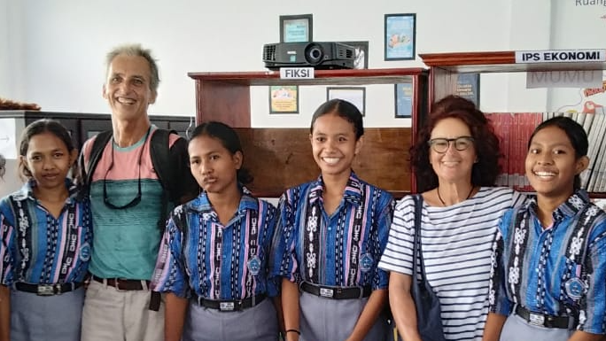 Mr. Adre & Mrs. Kristina come to our library and than take a picture with some students. Support always.
